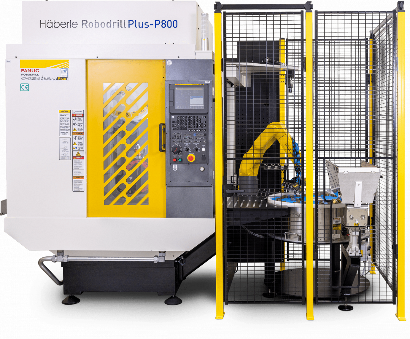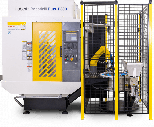 Die RobodrillPlus-P800 vereint flexible Schüttgut-Zuführung per Rundförderer mit intelligenter Automatisierung. Die Vibrationszuführung funktioniert optimal bei Teilen bis 250 g. Der FANUC LR-Mate 6-Achs-Roboter und ein integriertes Kamerasystem sorgen für vollautomatisiertes Teilehandling bei minimalem Platzbedarf.